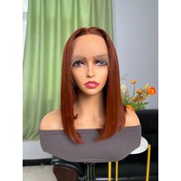 UNice Dark Copper Red 150% Density Bob Wig With 13x5x0.5 Glueless T Part Lace And Bone Straight Hair Texture.
