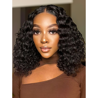 UNice Natural Black Color No Leave Out Beginner Friendly Water Wave V Part Bob Human Hair Wig