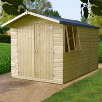 This robust, reliable Shire Guernsey Double Door Shed provides generous garden storage with the benefit of natural light and ventilation for the interior space. Constructed from 12mm smooth planed shiplap tongue and groove, offering a weathertight finish, this 10x7 shed provides you with a strong and durable structure for long-lasting use. The floor is also 12mm tongue and groove, ready to withstand storage of your heavier gardening equipment, such as a ride on mower, as well as years of footfall. The apex roof is OSB board finished in felt to ensure a weatherproof interior. Double doors provides ample room to stow and retrieve your gardening tools, lawn mower etc. Additionally, light and ventilation is provided by the space from two single opening windows. This, along with the generous headroom, creates a pleasant work space should you want to use this wooden shed as a workshop.This shed has been dip-treated to provide a 10-year anti-rot guarantee, when supported by annual retreatment.Delivery is FREE* to most mainland UK postcodes 10 year anti-rot guarantee, when supported by annual retreatment Constructed from 12mm shiplap tongue & groove cladding and a robust tongue & groove floor OSB solid sheet roof with felt finish 2 opening windows Double doors fitted with padbolt ready for your padlock (not supplied)