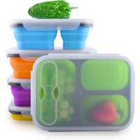 100% Food Grade Silicone Collapsible Food Container 2 Compartments Folding Bento Silicone Lunch Box with Fork