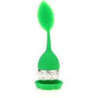 100%Food Grade Silicone Leaf Shape Handle and Stainless Steel Bottom Tea Infuser Strainer with a Drip Tray