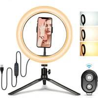 10inch 120-LED USB Powered Selfie Ring Light + Desktop Tripod + Remote Shutter for Live Broadcast Video Shooting