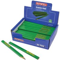 This Faithfull Carpenter's Pencil Set contains 12 medium pencils suitable for general carpentry, a retractable pencil holder and pencil sharpener. Almost any material can be marked out with these carpenter's pencils, with the exception of some metals and polished or glazed surfaces. The pencil leaves a clear visible line irrespective of material or grain. The retractable pencil holder keeps your pencil safe and close at hand. Let go of the pencil and the automatically retracting 850mm cord will pull the pencil back to its safe and ready-to-use home position. The belt clip can easily be attached to a belt, shirt collar or pocket. Also included is a specially shaped pencil sharpener for use with rectangular section carpenter's pencils, as well as ordinary hexagonal and round pencils.