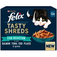 This promotional offer applies only to the listed variants starting with 1184348.xx (.xx = variant identifier). Make every meal a surprise with Felix Tasty Shreds wet cat food. Available in two different tasty varieties, each with a delicious combination of flavours. Felix Tasty Shreds is a balanced and complete wet cat food for adult cats, that provides your feline friend with all the valuable nutrients they need. With omega-6 fatty acids and vitamins D E, this delectable wet food helps support your cat's general health and vitality. The savoury pieces of shredded meat or fish in a truly irresistible gravy has this meal bursting with flavour, making it well-accepted by many cats. Felix Tasty Shreds are in practical 80g portions that are easy and quick to serve and it contains no artificial flavours, colours or preservatives. This all-round meal is perfect for feeding your cat on a daily basis, ensuring you can spoil your gourmand feline! Felix Tasty Shreds at a glance: Pouches of delicious wet cat food for adult cats 100% balanced complete: made of high-quality, selected ingredients Contains omega-6 fatty acids and Vitamin D E: to support your cat's well-being and vitality Delicious recipe: with tender shreds of meat or fish in an irresistible gravy Variety of flavours: Farm Selection: contains beef, duck, chicken and turkey Fish Selection: contains salmon, tuna, cod and plaice Mixed Selection: contains beef, chicken, salmon and tuna Practical packaging: easy and quick to serve thanks to 80g pouches No artificial colours, flavours or preservatives More information about the individual varieties can be found here: Felix Wet Cat Food * Special offer items have limited availability and are very popular. We cannot guarantee availability of these items. The images used in this promotion are for illustration purposes only and do not constitute a binding offer. Out of stock promotional items are no longer available for purchase.