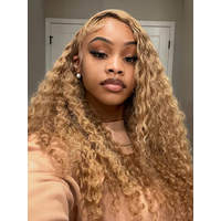 13×4 Lace Front Light Golden Brunette Glossy Water Wave Wig 150% Density