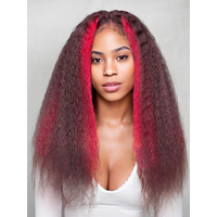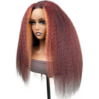 13×4 Lace Front Wig Burgundy Mixed Orange Highlight 4C Kinky Straight Lace Front Wig
