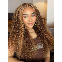13×4 Lace Front Wig With Blonde Piano Highlights 150% Density Curly Human Hair