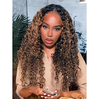 [20"=$69] Balayage Highlights Jerry Curly Glueless Wigs Beginner Friendly U Part Curly Hair Wig