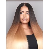 22inch Burgundy Ombre 4x4 Lace Closure Straight Human Hair Wig 180% Density