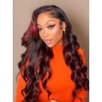 26 Inch UNice Black with Red & Blonde Highlights 13x4 Lace Front Red And Blonde Loose Wave Wig