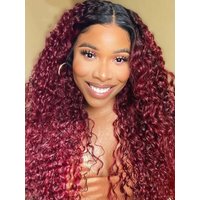 [26"=$129] Beginner Friendly V Part Burgundy Ombre With Dark Roots Curly Wig 150% Density