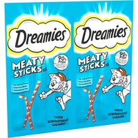 This promotional offer applies only to the listed variants starting with 2017815.xx (.xx = variant identifier). With Dreamies Meaty Sticks with Chicken, there's even more to add to your cat's excitement! This soft and savoury supplementary cat treats are high in protein with 90% meat and animal by-products, including 26% chicken. The grain-free recipe makes it suitable for cats with sensitivities and intolerances The practical packaging of 6 individually wrapped sticks keeps the snacks fresh, so that your pet can indulge every day! Feed whole or break into chunks and watch your cat pounce! Dreamies Meaty Sticks with Tasty Chicken at a glance: Supplementary treats for cats 6 individually wrapped sticks (6 x 5g) Soft and savoury: irresistible texture and flavour Protein-rich: 90% meat and animal by-products, including 26% chicken Grain-free recipe: suitable for cats with sensitivities and intolerances Free from artificial colours Dreamies Meaty Sticks with Salmon are packed with 90% fish meat, including a generous 26% salmon in every treat. Your cat will relish the protein-rich goodness! The grain-free recipe makes it suitable for cats with sensitivities and intolerances. Dreamies Meaty Sticks with Salmon at a glance: Supplementary treat for adult cats Individually wrapped sticks Soft and savoury: irresistible texture and flavour Protein-rich: 90% meat and animal by-products, including 26% chicken Grain-free recipe: suitable for cats with sensitivities and intolerances Free from artificial colours More information about the individual varieties can be found here: Dreamies Cat Snacks * Special offer items have limited availability and are very popular. We cannot guarantee the availability of these items. The images used in this promotion are for illustration purposes only and do not constitute a binding offer. Out of stock promotional items are no longer available for purchase.