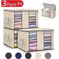 Package Included: 4PCS Clothes Storage Bags Item Specifics: Product Weight:1.76 pounds Material:Non-woven fabric+PVC Color:Beige Product Dimensions:60x43x35 cm / 23.6x16.9x13.7 in Features: xUPGRADED DURABLE MATERIAL xOur clothes organizer is made from high-quality, odorless, three-ply composite non-woven fabric that promotes ventilation and protects your stored things. We provide 4 pack large clothing dust-free storage bags in one set, which is more worth to take this large bags back to your home for your clothes, blankets comforters pillows bedding storage. xSTRENGTHEN DOUBLE HANDLE xThis time this storage bags sewed with three layers of thick fabric which can withstand loads about 11 lbs. So it will not be tearing when you move or lift these clothes storage containers. xMUCH LARGER SIZE 23.6x16.9x 13.7 in xOur storage bag measures 60 x 43 x 35 cm / 23.6 x 16.9 x 13.7 in,which is the largest bags for storage . It is ideal to store seasonal items, clothing, and household items.
