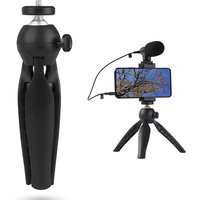 ADAI VK-01 Microphone with Handheld Tripod Phone Clamp Set for 3.5mm Audio Equipment – Black / Red