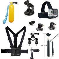 AT587 Basic GoPro Accessories Combo Kit with Headband Chest Strap and Sefie Stick for GoPro Hero 4/3/3+/2/2/1/Xiaomi Yi
