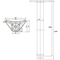 Length - 1100 mm (+25 mm height adjustment) maximum length 1125 mm Diameter - 60 mm Material: Tube - steel, mounting plate - aluminium, Foot - ABS plastic Complete with mounting plate and fixing screws