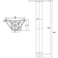 Length - 710 mm (+25 mm height adjustment) maximum length 735 mm Size - 60x60mm Material: Tube - aluminium, mounting plate - aluminium, Foot - ABS plastic Complete with mounting plate and fixing screws