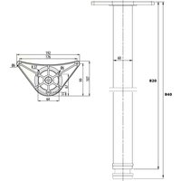 Length - 820 mm (+25 mm height adjustment) maximum length 845 mm Size - 60x60mm Material: Tube - aluminium, mounting plate - aluminium, Foot - ABS plastic Complete with mounting plate and fixing screws