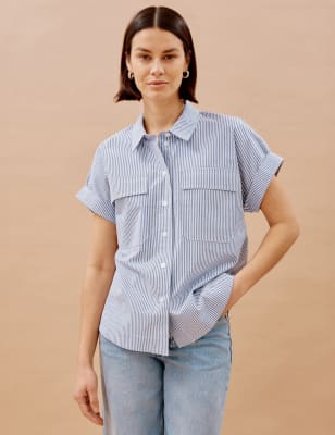 Albaray Women's Organic Cotton Collared Shirt - 10 - White Mix, White Mix