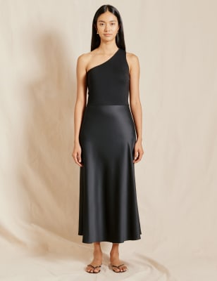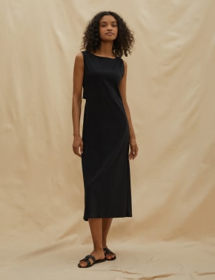 Albaray Women’s Satin Jersey Midaxi T-Shirt Dress – 10 – Black, Black