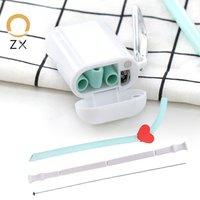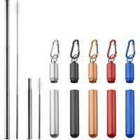Amazon Hot Sale Reusable Metal Drinking Folding Straw Collapsible Straw with Carabiner