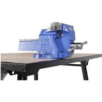 External Dims (WxDxHmm) 1165x870x1005 Internal Dims (WxDxHmm) Folded Down = 1165x870x315 TuffBench+, Folding workbench c/w handle and wheels and vices already attached. The TuffBench+ is a durable workbench, functional for contractors on construction sites, by means of a temporary work platform. The sustainable surface is manufactured from pressed timber and designed to be long lasting, making it simple to attach working tools (e.g. vices and pipe threaders etc.). The legs can be folded up, which means it is a considerably smaller unit to store when not in use, and makes it easier to move around site. Folding legs with a chain strap, to hold them back when in the folded position, No detachable parts, keeps it together as one unit, Durable timber work surface and powder coated frame, to maximise the product usability. With the added handle and wheels makes manoeuvring even easier, especially if the heavy vices are attached. This unit comes complete with a 4 chain vice and a 6 engineers