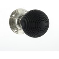 Atlantic - Old English Whitby Ebony Wood Reeded Mortice Knob on 60mm Face Fix Rose - Polished Brass