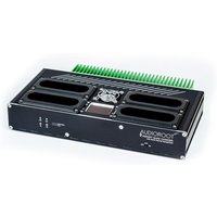 The AUDIOROOT eSMART TRIO is an advanced portable smart battery power distribution system for location sound recordists. It can accept up to 3 independent power sources (3 batteries or 2 batteries + 1 AC/DC external power supply) and distributes power via 8 x DC connectors and 2 x USB ports.