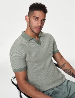 Autograph Men's Cotton Rich Colour Block Knitted Polo Shirt - SREG - Soft Green, Soft Green