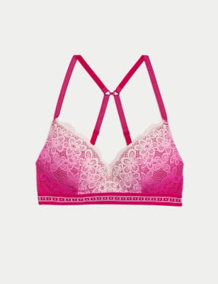This beautiful plunge bra from our B by Boutique range offers support and shaping. It's crafted from floral lace with a delicate scalloped trim around the cups. The branded underband offers bold contrasting detail. This piece is non-wired with padded cups to comfortably enhance your natural silhouette. A J hook fastening allows you to clip the straps into a racerback.n B by Boutique: fun and playful designs embracing a glamorous yet casual style that's cool, confident and accessible.