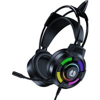 BATXELLENT H82 Cat Ears Design Wired Headphone RGB Light Gaming Headset with Noise Cancelling Mic – Black