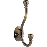 Ball End Double Robe Hook - Antique Brass Key MeasurementsOverall length: 55mmSuitabilityInterior wallsInterior timber doorsTimber battensWhat is includedOne hookScrewsWall plugsKey FeaturesAntique brass finishProduct Maintenance: Low maintenance. Occasional cleaning with a chamois cloth recommended.