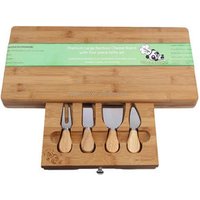 Bamboo Cheese Board 100% Natural With 3 Piece Cutlery Set Cheese Platter Hidden Cutlery Drawer