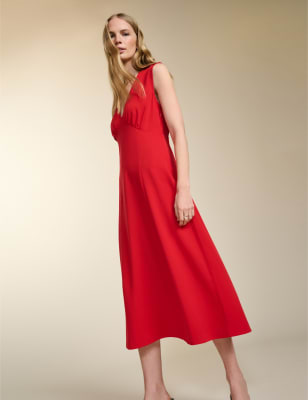 Baukjen Women's Pure Lyocell™ V-Neck Maxi Waisted Dress - 14 - Black, Black,Blue