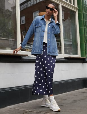 Baukjen Women's Satin Polka Dot Midi Tiered Dress - 10 - Navy Mix, Navy Mix