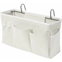Dimensions (LxWxH): approx. 38 x 13 x 21 cm, 1 main pocket, 2 front pocket, 2 side pocket, 2 small hooks Interior coated with PE, protects against steam and mold High quality canvas main part, wire frame, sturdy and durable For storing books, magazines, toys, glasses, cell phones, headphones, etc. Convenient and space-saving, easy to use, no assembly Product descriptions Color: white Product details: Color: white / green / pink / white checks Material: canvas, wire frame Dimensions (LxWxH): approximately 38 x 13 x 21 cm Note: Velcro fasteners may loosen during transport. Please squeeze the hook and loop fasteners back into place before use. Thanks a lot! Scope of delivery: 1 x bed bag