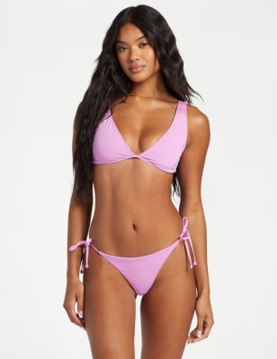 Go for a laidback look at the beach or pool with this timeless bikini top from Billabong. This flattering halterneck style has an adjustable regular fit, thanks to the tie fastenings. The triangle-shaped cups are non-wired for a lightweight feel and feature removable padding in case you want a boost.