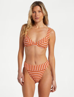 These striped bikini bottoms from Billabong are a fun addition to your sunshine holiday wardrobe. They come in an easy regular fit, sitting at the mid-waist with a super-high leg and skimpy coverage at the back. The pair is crafted from soft terry towelling fabric.