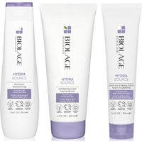 Specially designed for dry hair types, the Biolage Hydrasource Shampoo, Conditioner, Oil and Spray Routine is a four-step regimen that moisturises the lengths. Set Contents: Hydrasource Hydrating Shampoo For Dry Hair 250ml An aloe-infused formula that hydrates as it cleanses. Working from scalp to ends, the shampoo washes away impurities and product build-up, helping to leave hair feeling refreshed with a shiny appearance. Hydrasource Hydrating Conditioner For Dry Hair 200ml Harnessing the benefits of aloe vera and passion fruit extracts, this conditioner offers lasting nourishment to the lengths. The formula’s softening properties leaves hair with an irresistibly silky finish. All-In-One Oil Infused with Moringa Oil For All Hair Types 89ml This pre-shampoo hair oil utilises moringa extract to help condition the strands, enhance manageability and add a visible lustre. The multi-purpose formula can also be used as a styling oil or overnight treatment, fitting seamlessly into your haircare routine. All-In-One Coconut Infusion Multi-Benefit Leave-In Spray for All Hair Types 150ml Promote smooth, radiant-looking lengths with this spray. Suitable for all hair types, the mist removes knots and tangles, while helping to minimise dryness. A do-it all formula, the spray also protects against heat damage.