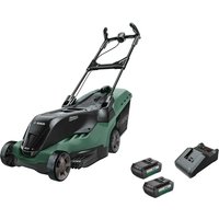Part of the Bosch Green (Garden/DIY) 36v cordless platform, this lithium ion battery powered lawnmower offers exceptional results for convenient and very quiet mowing. The ProSilence feature reduces the sound omitted by up to 30% and also filters out unpleasant noise through its acoustically enhanced design features. This model is supplied ready for use out of the box with a 2.0ah battery and charger. The battery included with this lawnmower can also be used to power other Bosch 36v cordless garden tools such as grass trimmers and leaf blowers. Features & Benefits • Shares battery compatibility with other Bosch 36v garden tools • 40cm width of cut with 7 cutting height settings • Single button cutting height adjustment • GrassCombs help the mower cut close to edges and walls • Spacious 50 litre grass collector made from durable plastic • Grass collector has integrated carry handle and can be collapsed for storage • ProSilence design for reduced noise and less disturbance to others in the vicinity • LeafCollect blade which is suitable for shredding and collecting leaves as well as clipping grass • Adjustable Ergoslide handles for comfortable posture and ease of steering Specifications • Power: Battery • Battery Voltage: 36v • Battery Type: Bosch Green (Garden/DIY) Lithium Ion • Mower Type: Rotary • Drive Type: Push • Width of Cut: 40 cm • Height of Cut: 25 – 80 mm • Cutting Height Settings: 7 • Recommended Lawn Area: up to 650 square metres • Grass Collector Capacity: 50 litres • Handles: Ergoslide • Rear Roller: Yes • Weight: 17.5 kg Contents • ADVANCEDROTAK 36-650 36v Cordless Rotary Mower • 50 Litre Grass Box • Bosch Green 36v 6.0ah Lithium Ion Battery (x1) • AL 3620 CV Battery Charger
