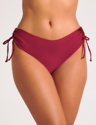 These glamorous bikini bottoms by Boux Avenue are the perfect pair for your next holiday. They're designed in an effortless regular fit, with eyelets and a tie fastening at the side for a neat touch. The easy high-leg shape provides a flattering elongated silhouette. They're finished with premium small metallic branding at the back.