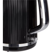 With an elegant ridged texture, ultra glossy finish, and satin chrome accents, the Breville VKT221 Bold 1.7L Textured Plastic Kettle is a must–have for any home and is sure to be the centre point to any kitchen worktop. Designed for easy handling and refilling, this impressive 1.7L kettle boasts a handy pull–off lid and water window on both sides – ensuring you always boil just the right amount of water! The illuminated switch lights up when the water is boiling, and makes operation a breeze. The large 1.7L capacity is perfect for busy family homes, preparing up to 7 cups of water on a single boil! Features and Benefits Pull–off lid – Makes refilling the Breville Bold a breeze, for effortless everyday handling. 1.7L capacity – Preparing up to 7 cups of water on a single boil! Sleek design – With an elegant ridged texture, ultra glossy finish, and satin chrome accents. Specifications Dimensions: H23.1 x W15.7 x D23cm Guarantee: 1 year Colour: Black and chrome Capacity: 1.7L Weight: 1.1kg
