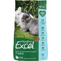 These Burgess Excel Adult Rabbit Nuggets with Mint have been created as a complementary feed to ensure that every rabbit can receive premium nutrition, helping to support a long and healthy lifestyle. It is in a nugget format that prevents your rabbit simply picking out its favourite, higher sugar parts of the food and leaving the nutritious, fibre-rich pieces behind. Vets recommend choosing a diet that can support your rabbit's dental, digestive and emotional help, and these Burgess Excel Adult Rabbit Nuggets with Mint have been tailored to do just that. The Excel Feeding Plan offers the ideal way to ensure your rabbit is getting everything it needs, including the right levels of nutrients and fibre. Burgess Excel Adult Rabbit Nuggets with Mint at a glance: Tailored complementary feed for adult rabbits In blended, extruded nugget form that prevents selective feeding Rich in beneficial fibre (39%): essential for supporting digestive health, combined with a natural prebiotic Antioxidants: natural immune system support Nutritious: contains all the key nutrients your rabbit needs for good health, including essential vitamin C, helping to support eyes, skin and coat Tasty: with mint to provide an irresistible flavour Did you know that your rabbit or guinea pig's diet should consist of around 85-90% hay? Use a hay such as our Feeding Hay with Dandelion Marigold to create the main part of your small pet's diet, helping to support dental and digestive health. Burgess Nuggets can be added to provide key vitamins, minerals and fibre, as well as to help avoid selective feeding. Feed snacks as a little additional treat, as well as handfuls of fresh greens, to help boost your pet's mental health and happiness, and make sure fresh drinking water is always accessible. Check out our website for advice on which vegetables can be beneficial to your pet!