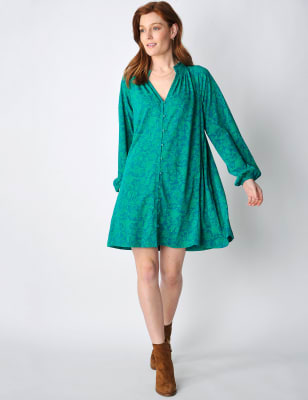 Bring a bohemian feel to your wardrobe with this floral tea dress from Burgs. It's made in a regular fit, with a v-neckline and button fastenings through the front. Shirred cuffs bring subtle volume to the short sleeves, while the versatile midi-length skirt offers a flattering finish.