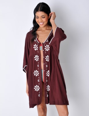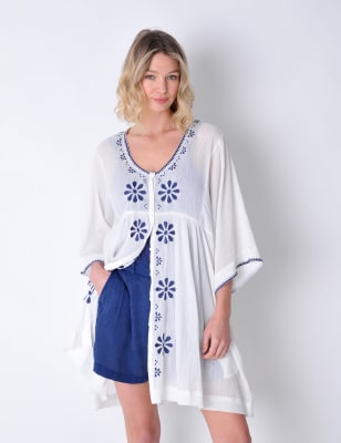 This striped dress from Burgs is crafted from pure cotton, making it the perfect choice for warmer days. It's cut in a flattering regular fit, with a shirred bodice, square neckline and ruflled straps. The midi-length skirt features breezy tiers and is finished with delicate floral embroidery and a scalloped hem.