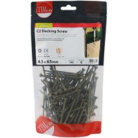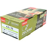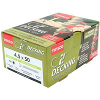 TIMCO C2 Deck-Fix Premium Countersunk Green Decking Screws - 4.5 x 50 A premium decking screw using the C2 twin-cut technology. Coated with a patented multi-layer corrosion resistant plating to withstand up to 1,000 hours in a salt spray cabinet. This new and innovative design enables the screw to rapidly penetrate the timber, cleanly countersink and securely clamp the decking board to the joists. C2 Deck-Fix TX20 CSK GRN Strengthened head to prevent shearing when installed with an impact tool Ribs under the head for improved countersinking Helix shank for removing debris and to improve clamping Coated with a patented multi-layer corrosion resistant plating to withstand 1,000 hours salt spray Patented twin cut technology for rapid pick-up and reduces timber splitting