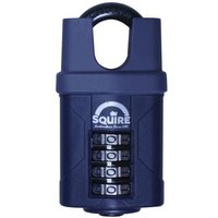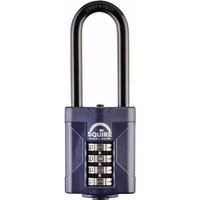 The Henry Squire CP40/2.5 Combination Padlock 4-Wheel 40mm Extra Long Shackle 63mm has a 4-wheel re-codeable combination offering upto 10,000 combinations and is supplied with code changing instructions inside the pack. Squire Security Rating 5 (Based on a Rating of 1-15). Specification Body Width: 40.0mm. Body Thickness: 22.0mm. Shackle Diameter: 6mm. Vertical Shackle Clearance: 63.5mm. Horizontal Shackle Clearance: 17mm.