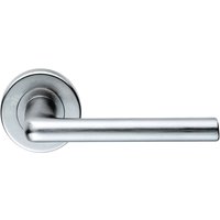 Carlisle Brass Serozzetta Dos contemporary lever, 111mm long, on 51mm press on round rose with bolt through fixings. Matching bathroom turn and escutcheon available. In Polished Chrome finish. Supplied & sold in pairs complete with fixings. Finish: Satin Chrome. Size: 111mm Lever.