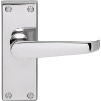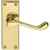 Carlisle Brass Victorian Lever Latch Contract Handle 120 x 40mm (H x W) Polished Brass is fitted on a plain rectangular lever on latch backplate. The handle has unique lines and the straight lever comes with an inward curve at the end. Suitable for all types of PVC, wood and composite doors. Supplied & sold in pairs complete with fixings. Finish prevents tarnishing. Corrosion resistant.