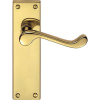 Carlisle Brass Victorian Scroll Latch Contract Polished Brass is a fire resistant handle that is suitable for interior and exterior doors. This Product measures about 120 x 40mm (L x W). This door handle is slightly bent at the end to aid grip is fixed on a straight backplate with corners. The handle features a comfortable gently curved lever handle with smooth spring action. The plain rectangular backplate is a classic scroll lever with its clean and simple lines conveying its traditional heritage. It can be fixed with four screws at different corners and is suitable for internal doors. This product is supplied in a pack includes a pair of handles, hinges and a tubular latch. Supplied & sold in pairs complete with fixings. Manufactured from stainless steel makes it corrosion resistant. Budget scroll lever lack for door handle.